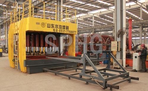 漲形機(jī)是水泊焊割(SPHG)在積累了多年的焊接工藝和設(shè)備調(diào)試技術(shù)并吸收國(guó)外先進(jìn)技術(shù)的基礎(chǔ)上自行開(kāi)發(fā)、研制的一款封頭漲形專(zhuān)用設(shè)備。它是利用我們常見(jiàn)和常用的液壓系統(tǒng)制動(dòng)液壓缸,利用模具把工件壓緊,通過(guò)高壓水機(jī)往模具里注水來(lái)完成漲形的。